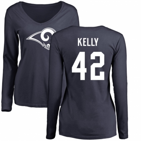 >NFL Women's Nike Los Angeles Rams #42 John Kelly Navy Blue Name & Number Logo Slim Fit Long Sleeve T-Shirt