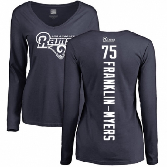 NFL Women's Nike Los Angeles Rams #57 John Franklin-Myers Navy Blue Backer Slim Fit Long Sleeve T-Shirt