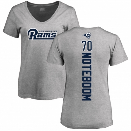 >NFL Women's Nike Los Angeles Rams #70 Joseph Noteboom Ash Backer V-Neck T-Shirt