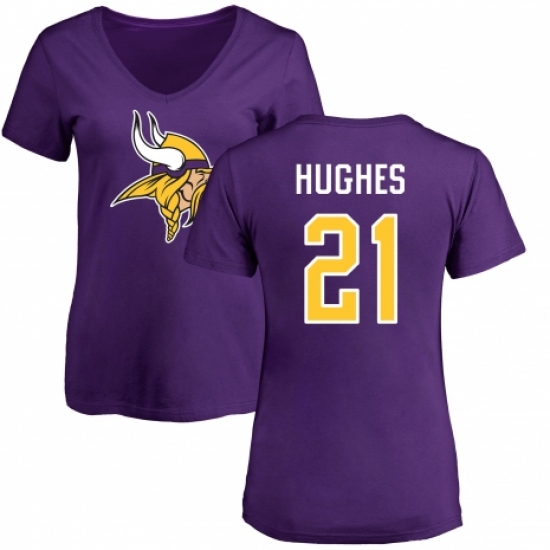 >NFL Women's Nike Minnesota Vikings #21 Mike Hughes Purple Name & Number Logo Slim Fit T-Shirt