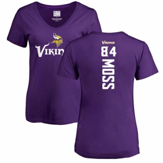 NFL Women's Nike Minnesota Vikings #84 Randy Moss Purple Backer Slim Fit T-Shirt
