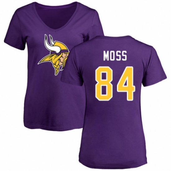 NFL Women's Nike Minnesota Vikings #84 Randy Moss Purple Name & Number Logo Slim Fit T-Shirt