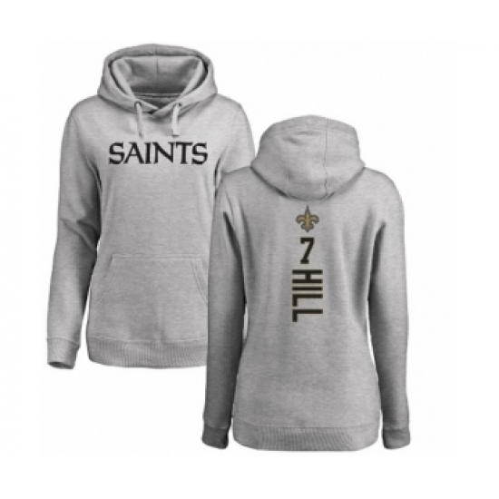 NFL Women's Nike New Orleans Saints #7 Taysom Hill Ash Backer Pullover Hoodie