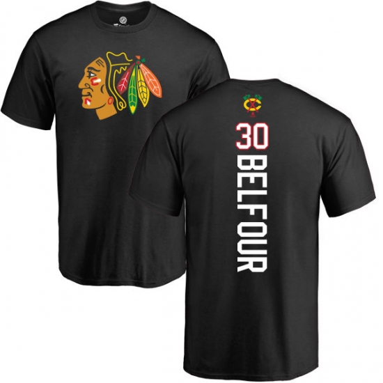 >NHL Adidas Chicago Blackhawks #30 ED Belfour Black Backer T-Shirt