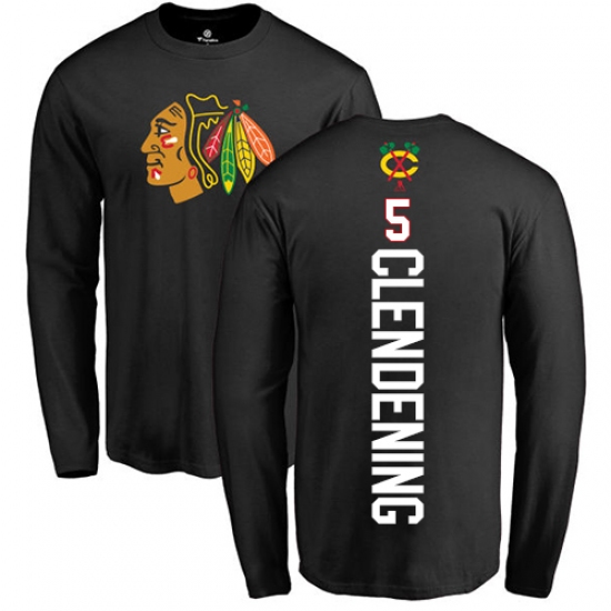 >NHL Adidas Chicago Blackhawks #5 Adam Clendening Black Backer Long Sleeve T-Shirt