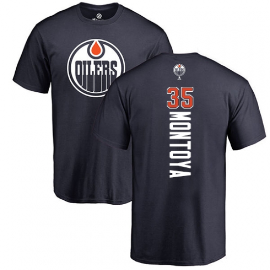 NHL Adidas Edmonton Oilers #35 Al Montoya Navy Blue Backer T-Shirt