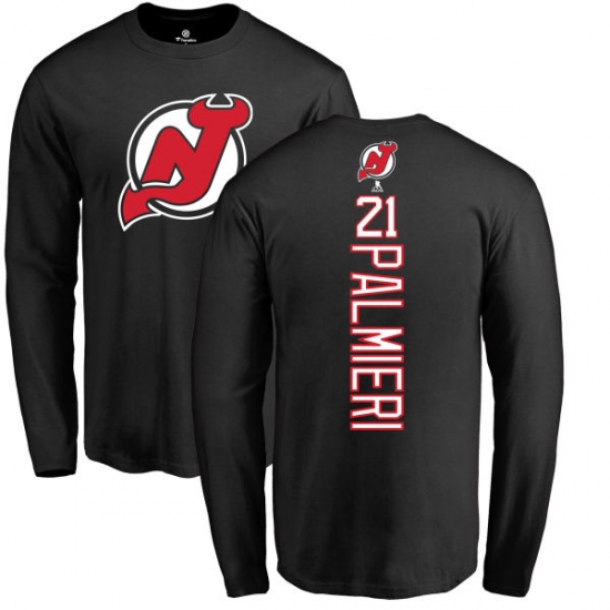 NHL Adidas New Jersey Devils #21 Kyle Palmieri Black Backer Long Sleeve T-Shirt