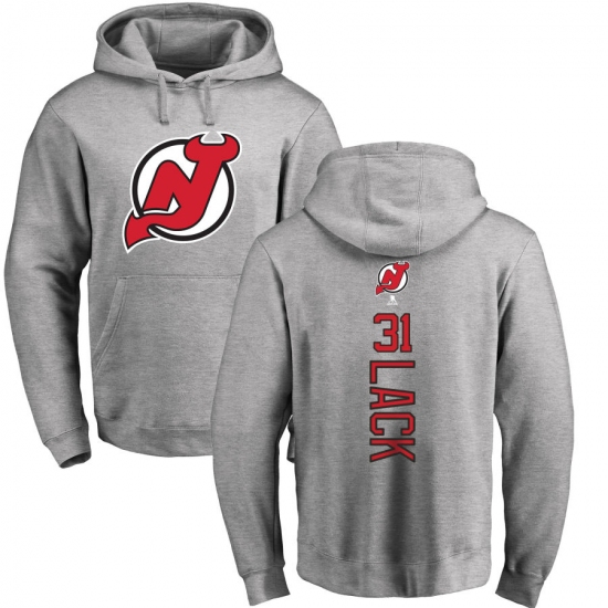 >NHL Adidas New Jersey Devils #31 Eddie Lack Ash Backer Pullover Hoodie