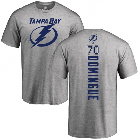 >NHL Adidas Tampa Bay Lightning #70 Louis Domingue Ash Backer T-Shirt