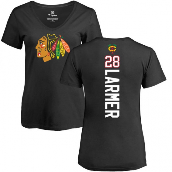 >NHL Women's Adidas Chicago Blackhawks #28 Steve Larmer Black Backer T-Shirt