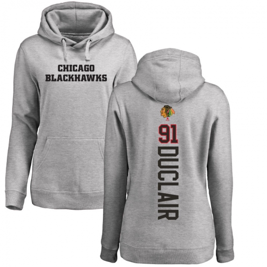 >NHL Women's Adidas Chicago Blackhawks #91 Anthony Duclair Ash Backer Pullover Hoodie