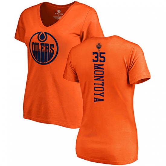>NHL Women's Adidas Edmonton Oilers #35 Al Montoya Orange One Color Backer Slim Fit V-Neck T-Shirt