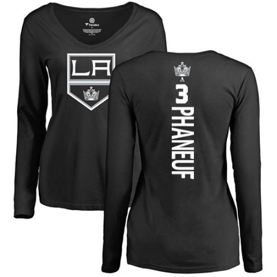 >NHL Women's Adidas Los Angeles Kings #3 Dion Phaneuf Black Backer Long Sleeve T-Shirt