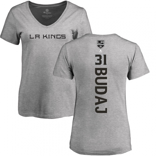 >NHL Women's Adidas Los Angeles Kings #31 Peter Budaj Ash Backer T-Shirt