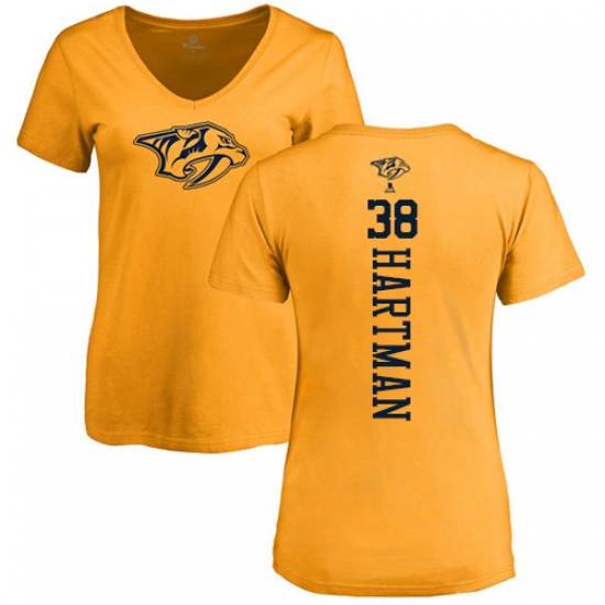>NHL Women's Adidas Nashville Predators #38 Ryan Hartman Gold One Color Backer T-Shirt