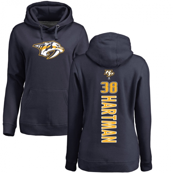 >NHL Women's Adidas Nashville Predators #38 Ryan Hartman Navy Blue Backer Pullover Hoodie