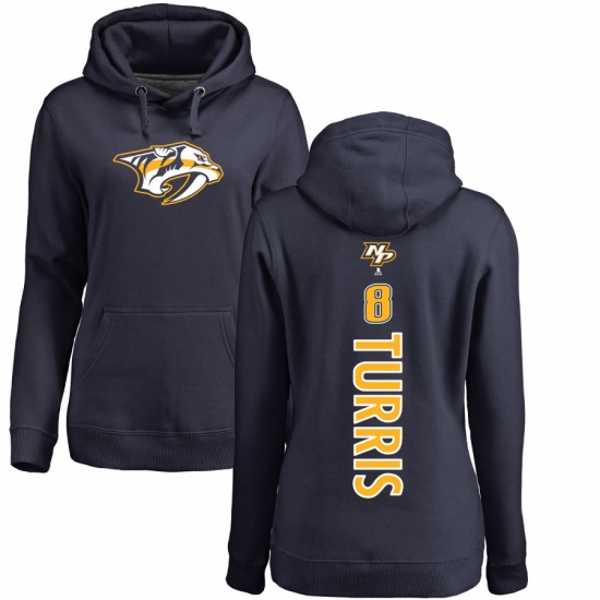 >NHL Women's Adidas Nashville Predators #8 Kyle Turris Navy Blue Backer Pullover Hoodie