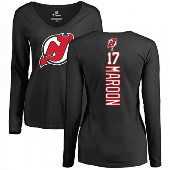 >NHL Women's Adidas New Jersey Devils #17 Patrick Maroon Black Backer Long Sleeve T-Shirt