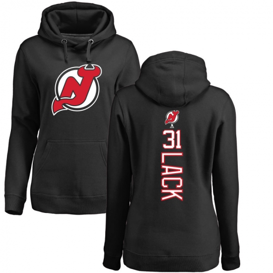 >NHL Women's Adidas New Jersey Devils #31 Eddie Lack Black Backer Pullover Hoodie
