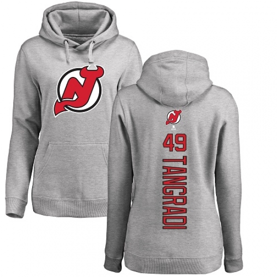 >NHL Women's Adidas New Jersey Devils #49 Eric Tangradi Ash Backer Pullover Hoodie