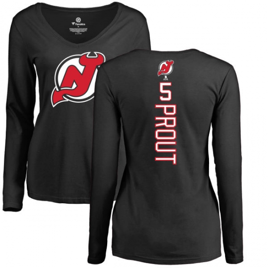 NHL Women's Adidas New Jersey Devils #5 Dalton Prout Black Backer Long Sleeve T-Shirt