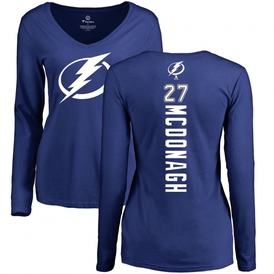 NHL Women's Adidas Tampa Bay Lightning #27 Ryan McDonagh Royal Blue Backer V-Neck Long-Sleeve T-Shirt