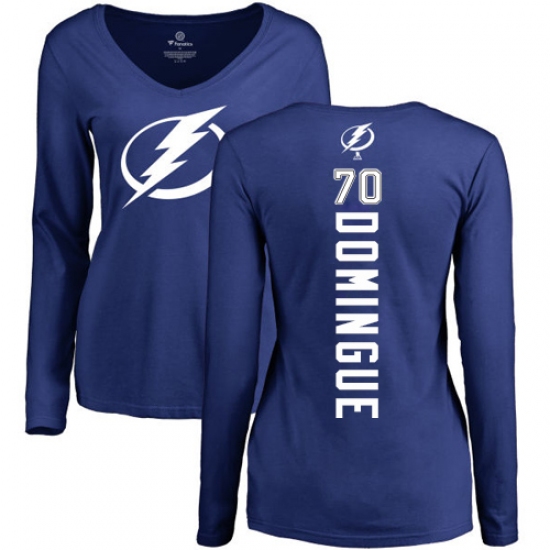 >NHL Women's Adidas Tampa Bay Lightning #70 Louis Domingue Royal Blue Backer V-Neck Long-Sleeve T-Shirt