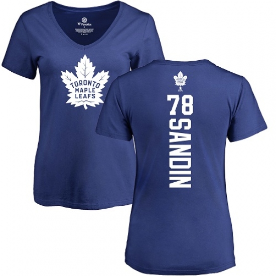 NHL Women's Adidas Toronto Maple Leafs #78 Rasmus Sandin Royal Blue Backer T-Shirt