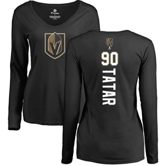 >NHL Women's Adidas Vegas Golden Knights #90 Tomas Tatar Black Backer Slim Fit Long Sleeve T-Shirt
