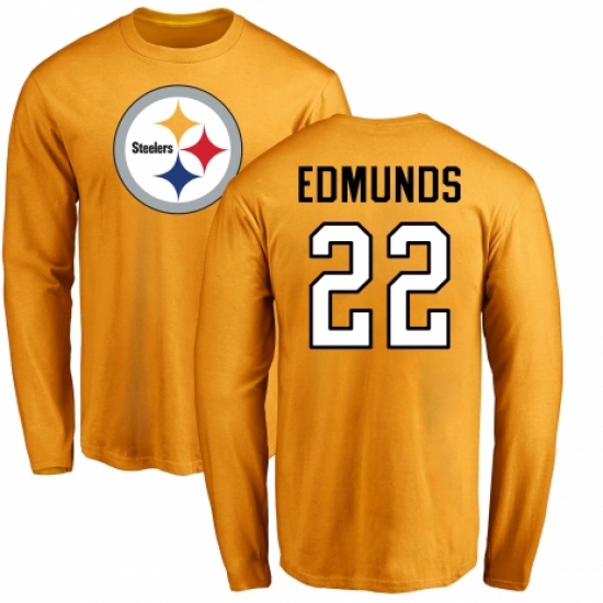 Nike Pittsburgh Steelers #22 Terrell Edmunds Gold Name & Number Logo Long Sleeve T-Shirt