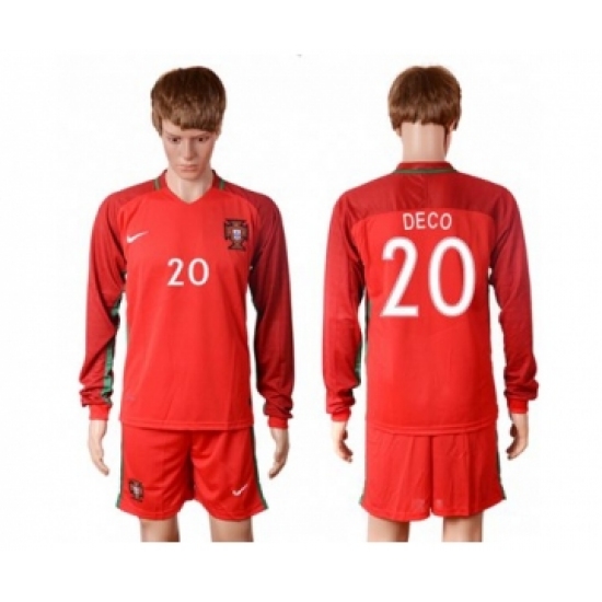 Portugal #20 Deco Home Long Sleeves Soccer Country Jersey
