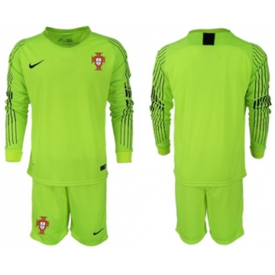 >Portugal Blank Shiny Green Goalkeeper Long Sleeves Soccer Country Jersey
