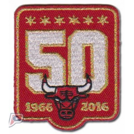 >Stitched Chicago Bulls 50th Anniversary Season Logo Red Jersey Patch