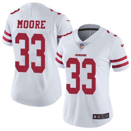 >Women Nike San Francisco 49ers #33 Tarvarius Moore White Vapor Untouchable Elite Player NFL Jersey