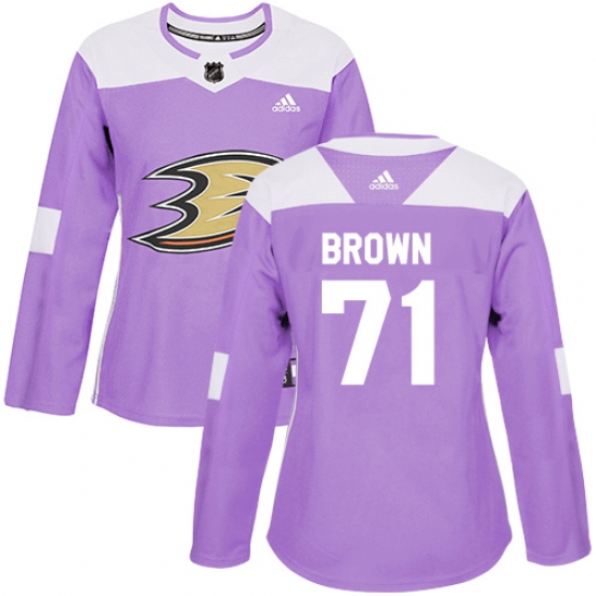 Women's Adidas Anaheim Ducks #71 J.T. Brown Authentic Purple Fights Cancer Practice NHL Jersey
