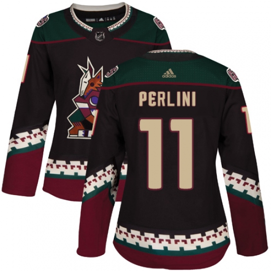 >Women's Adidas Arizona Coyotes #11 Brendan Perlini Authentic Black Alternate NHL Jersey