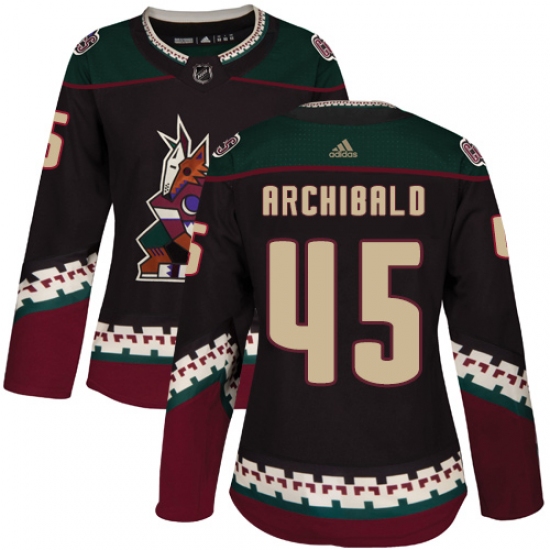 >Women's Adidas Arizona Coyotes #45 Josh Archibald Authentic Black Alternate NHL Jersey