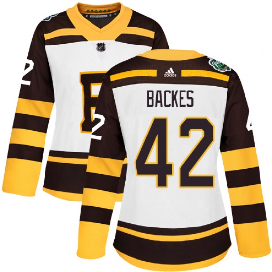 >Women's Adidas Boston Bruins #42 David Backes Authentic White 2019 Winter Classic NHL Jersey