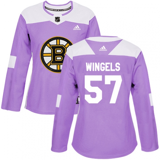 >Women's Adidas Boston Bruins #57 Tommy Wingels Authentic Purple Fights Cancer Practice NHL Jersey