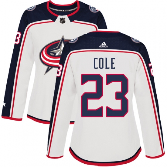 Women's Adidas Columbus Blue Jackets #23 Ian Cole Authentic White Away NHL Jersey
