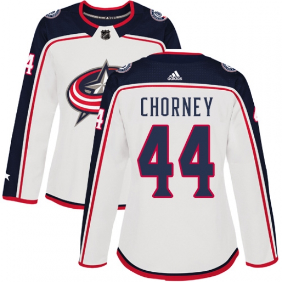 >Women's Adidas Columbus Blue Jackets #44 Taylor Chorney Authentic White Away NHL Jersey