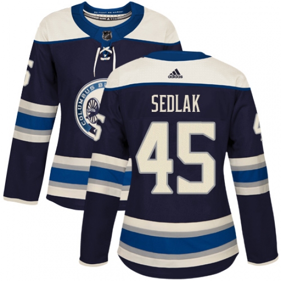 Women's Adidas Columbus Blue Jackets #45 Lukas Sedlak Authentic Navy Blue Alternate NHL Jersey