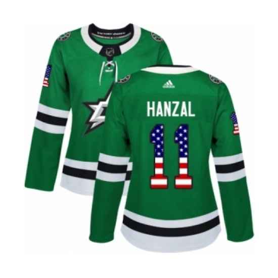 >Women's Adidas Dallas Stars #11 Martin Hanzal Authentic Green USA Flag Fashion NHL Jersey