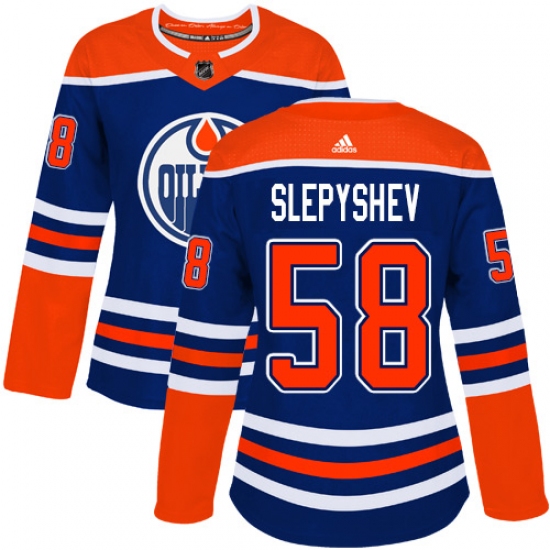>Women's Adidas Edmonton Oilers #58 Anton Slepyshev Authentic Royal Blue Alternate NHL Jersey