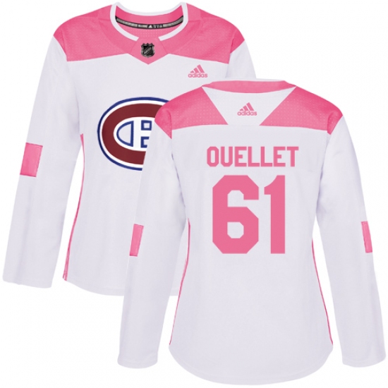 Women's Adidas Montreal Canadiens #61 Xavier Ouellet Authentic White Pink Fashion NHL Jersey