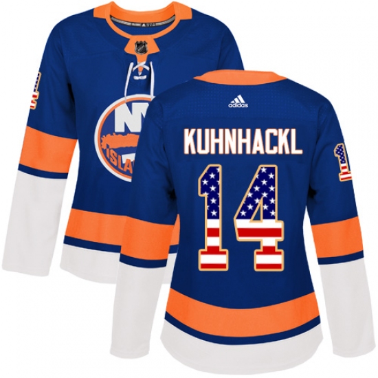 Women's Adidas New York Islanders #14 Tom Kuhnhackl Authentic Royal Blue USA Flag Fashion NHL Jersey