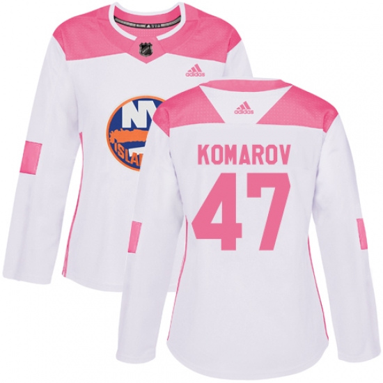 Women's Adidas New York Islanders #47 Leo Komarov Authentic White Pink Fashion NHL Jersey