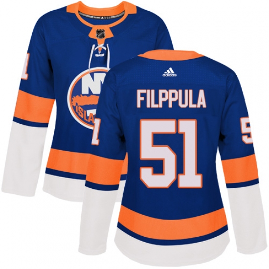 >Women's Adidas New York Islanders #51 Valtteri Filppula Premier Royal Blue Home NHL Jersey