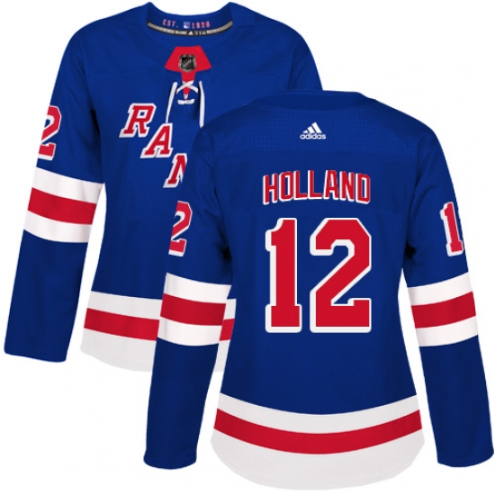 Women's Adidas New York Rangers #12 Peter Holland Authentic Royal Blue Home NHL Jersey