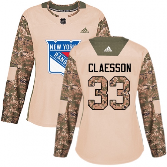 >Women's Adidas New York Rangers #33 Fredrik Claesson Authentic Camo Veterans Day Practice NHL Jersey